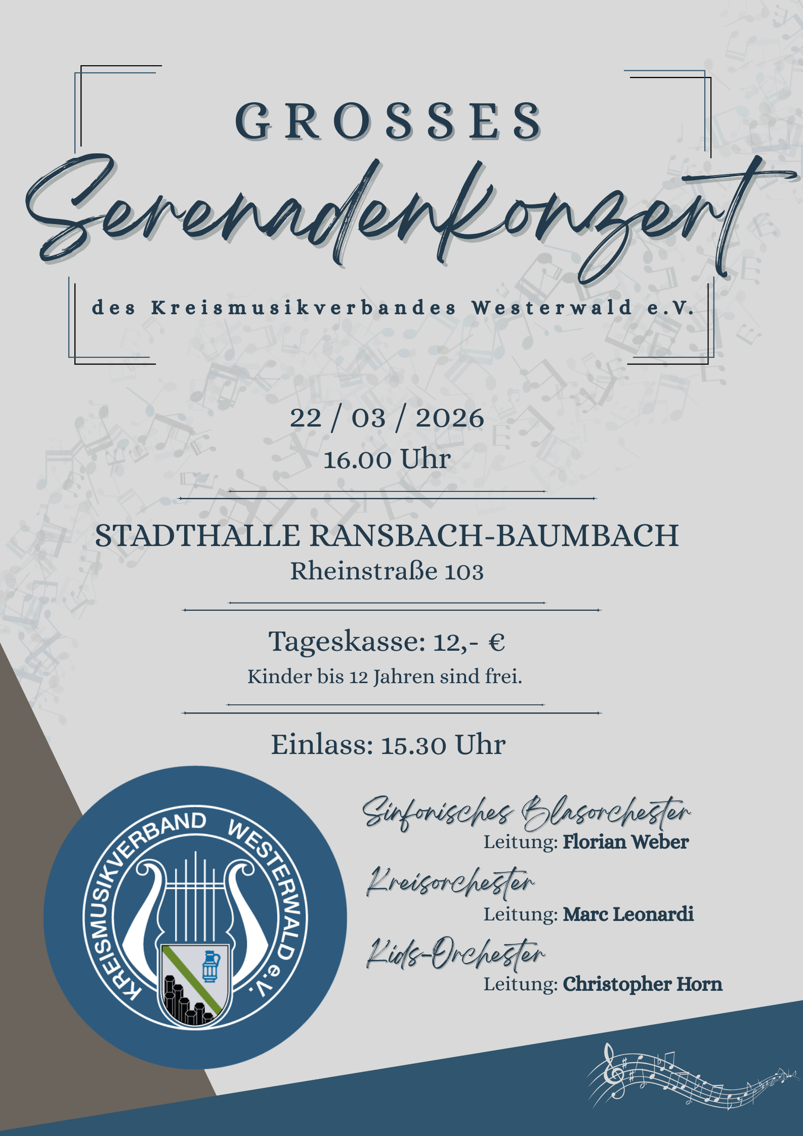 HomeNewsSerenadenkonzert am 22.03.26 Serenadenkonzert am 22.03.26 okrA1m3e 22. Februar 2026 News 0 Share Unsere drei Projektorchester präsentieren Ihre Ergebnisse an diesem Tag in der Stadthalle Ransbach-Baumbach. Wir freuen uns auf einen tollen Konzert-Nachmittag!! Vorheriger Beitrag neuer Newsletter Weitere Beiträge News neuer Newsletter 22. Februar 2026 News Ehrungen ab Januar nur noch online über ComMusic beantragen 29. Oktober 2025 News Ausschreibung Projektorchester SBO, KO und Kids-Orchester 28. Oktober 2025
